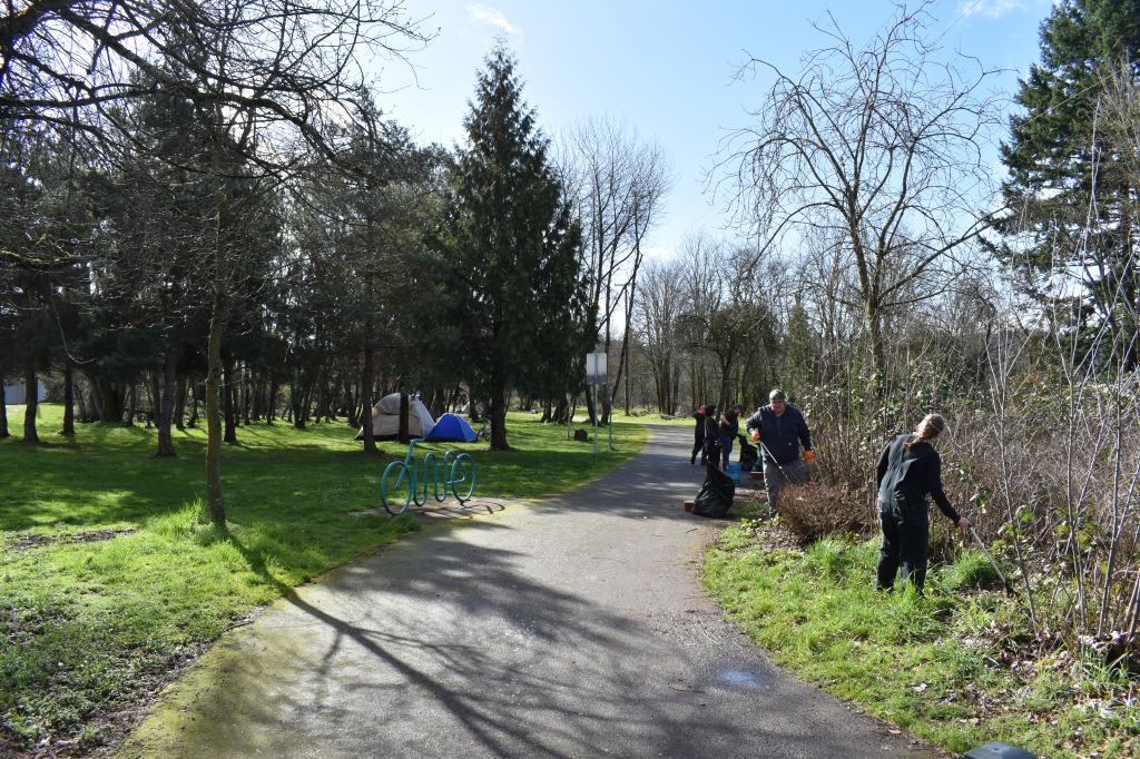 On the sunny *Sunday* that was February 16th, about 40 folks attended a clean up along the Peninsula Crossing Trail in St. Johns, the event’s organizer said.