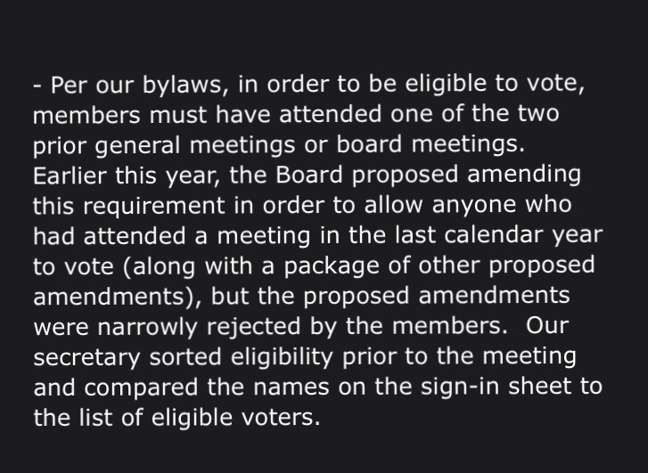 In his response to questions about the meeting, Vial also said the board tried to change the rules regarding voting as part of a broad package of reforms, but it was rejected by the membership.